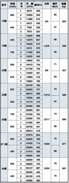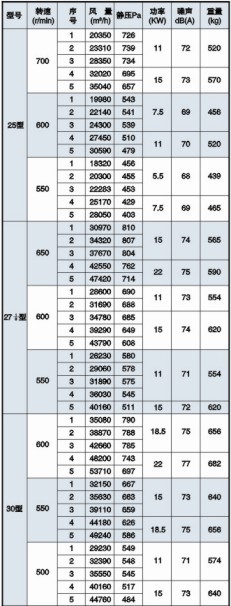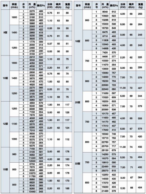 六、HTFC(DT)-Ⅱ型消防通风(两用)低噪声柜式离心通风机性能参数表