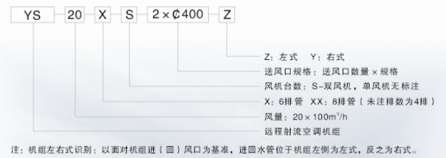 一、远程射流空调机组型号表示方法