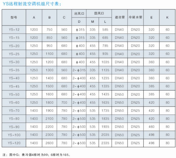 五、远程射流空调机组参数